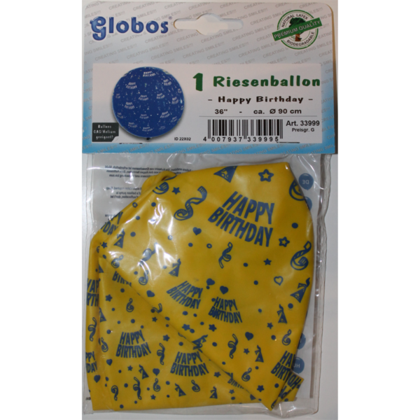 Globos Rundballon | 36″ Gedeckt & Kristall | “Happy Birthday” | 1 Stück