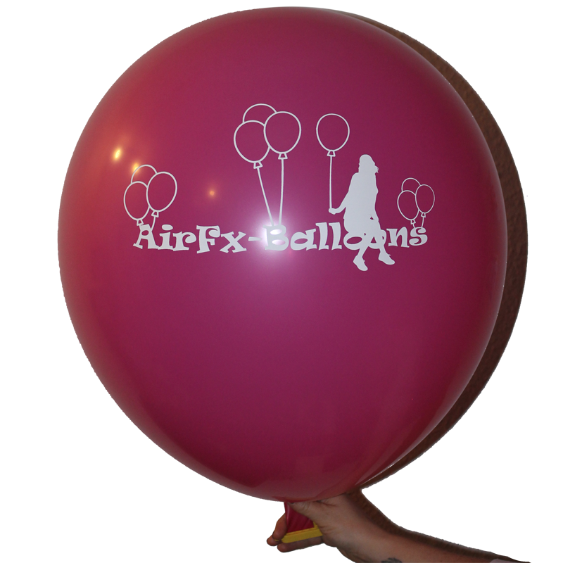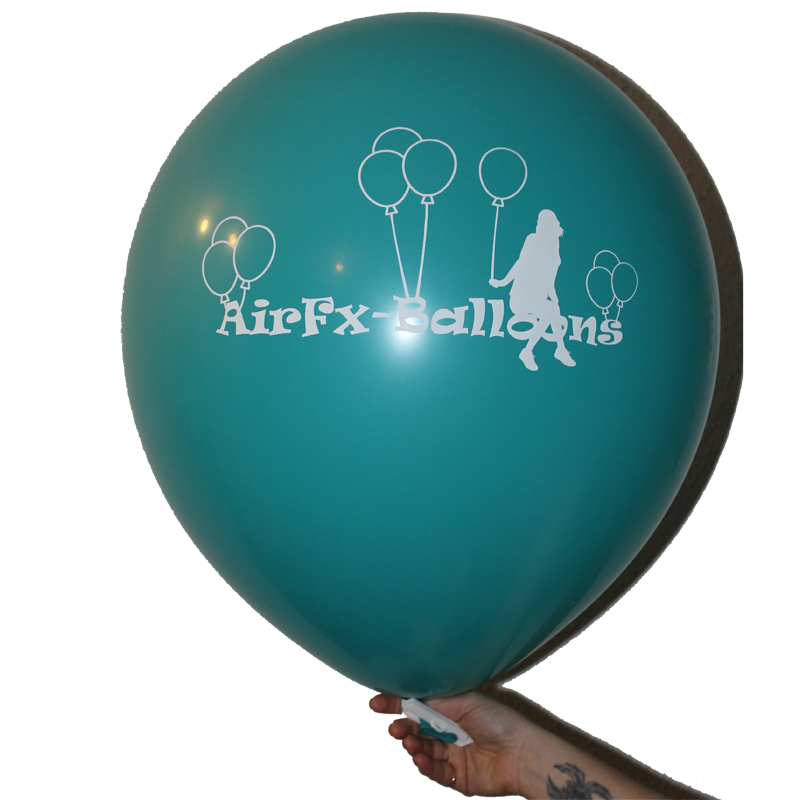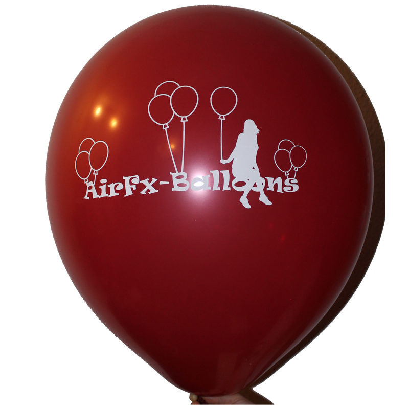 Rundballons der Marke Elitex, Durchmesser 18″ (45 cm), in gedeckten Farben mit zweiseitigem, weißem Aufdruck “AirFx-Lifted”